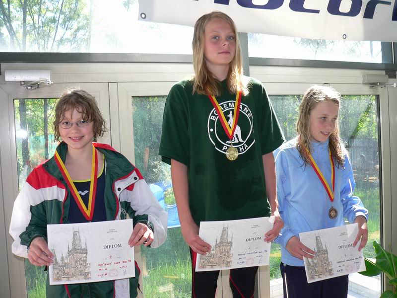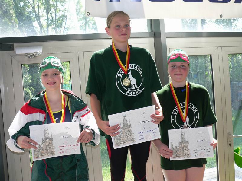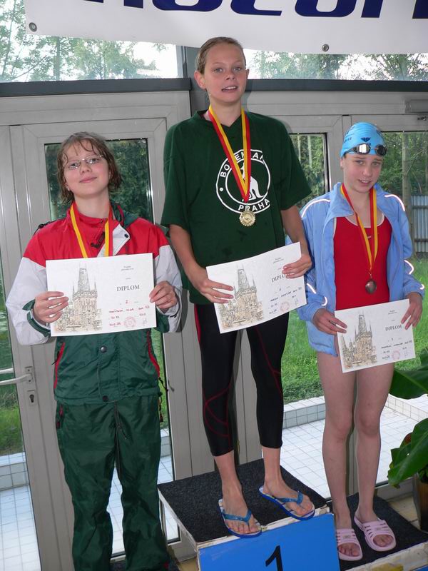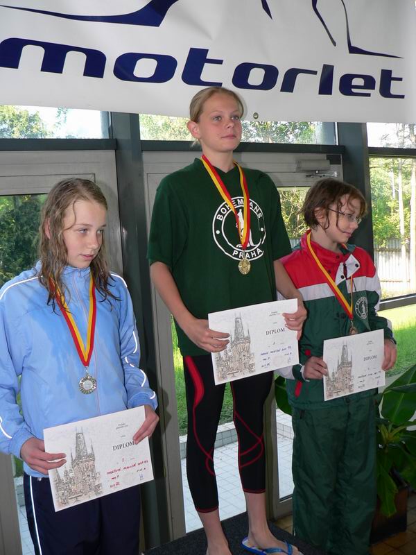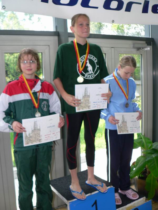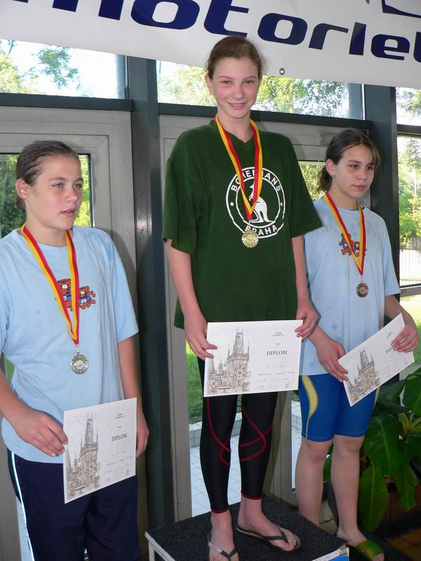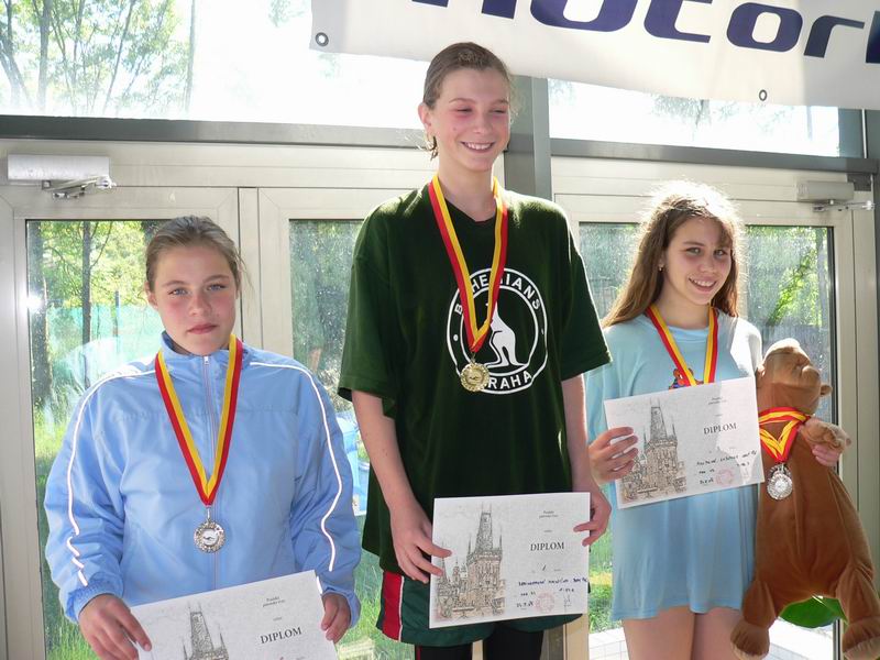 vyhlášení 100M žačky 1997 - 1. Kristýna Horská, 2. Olga Vaníčková, 3. Adéla Zvěřinová