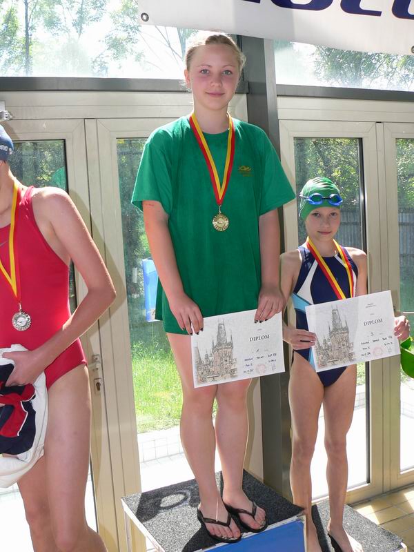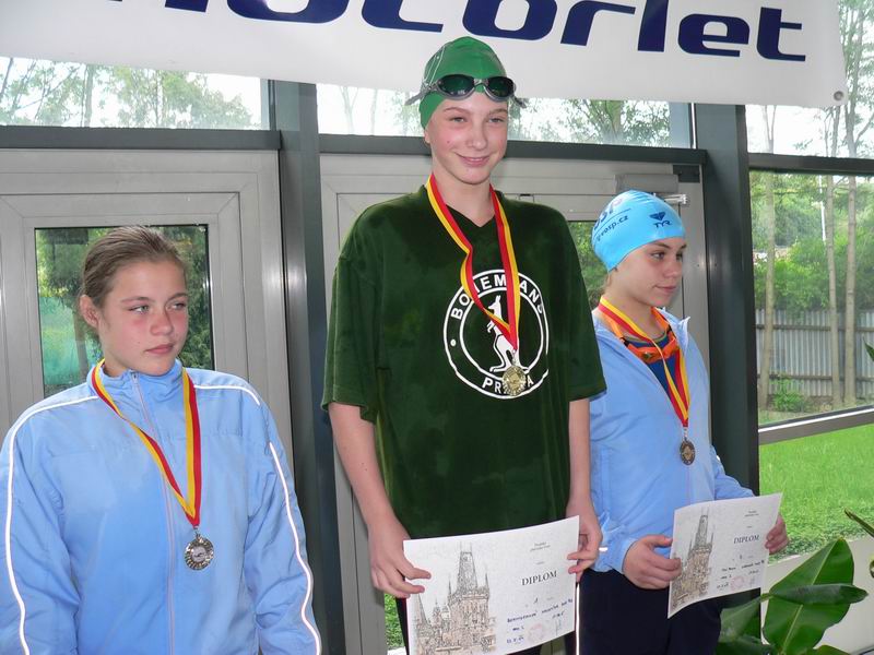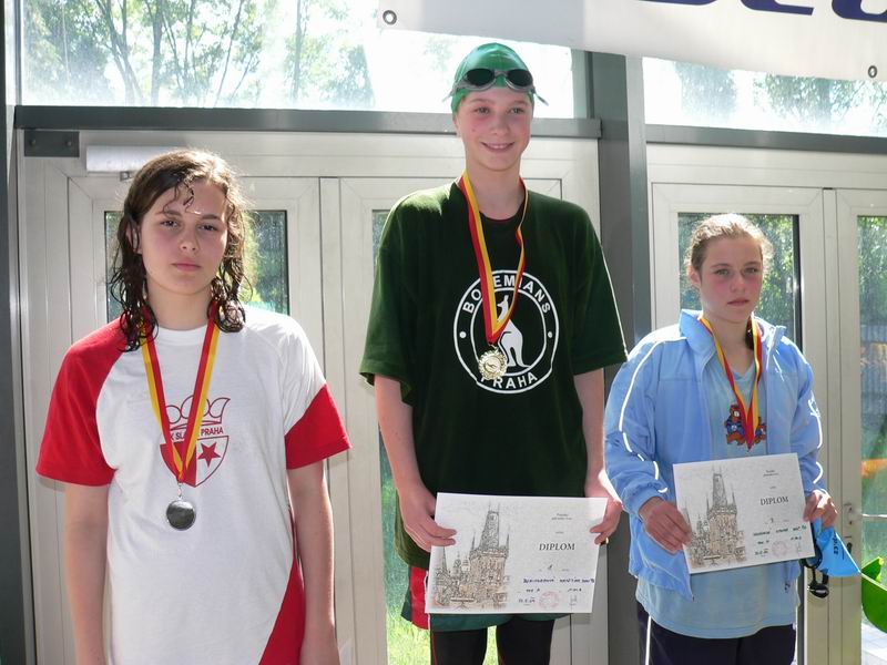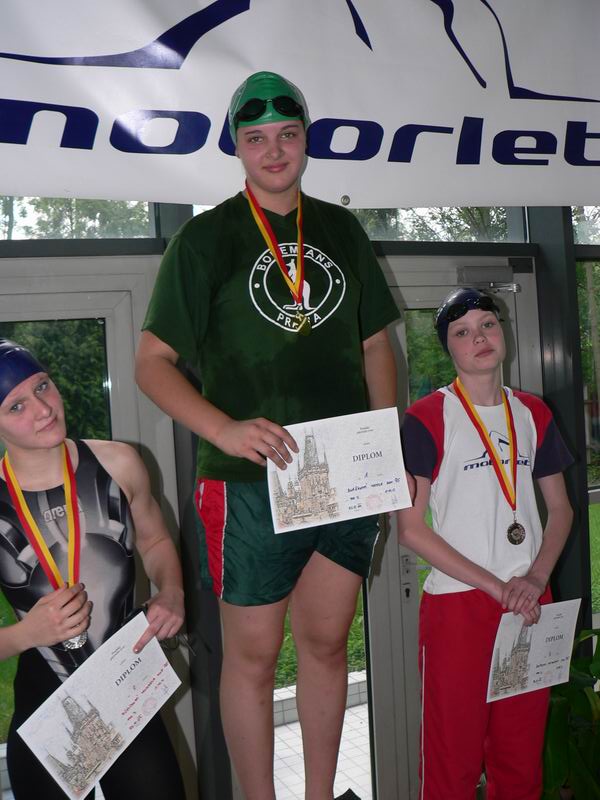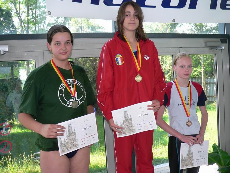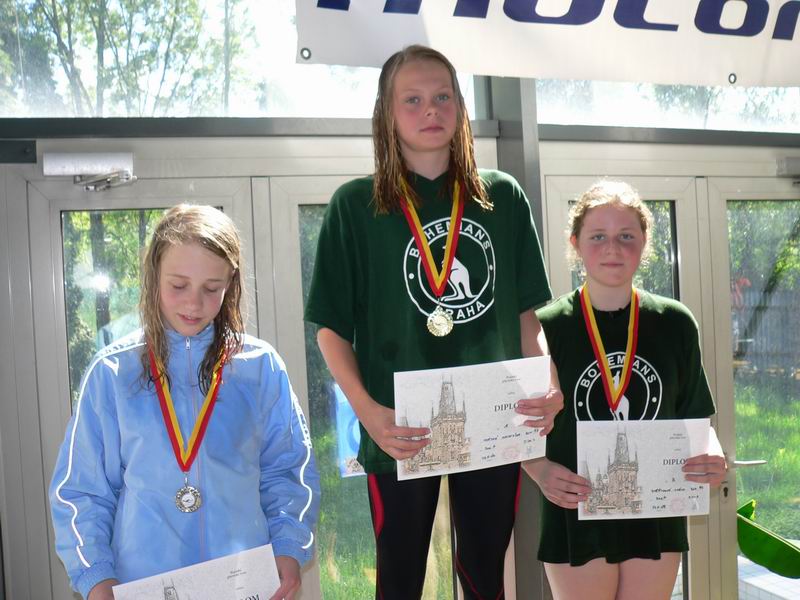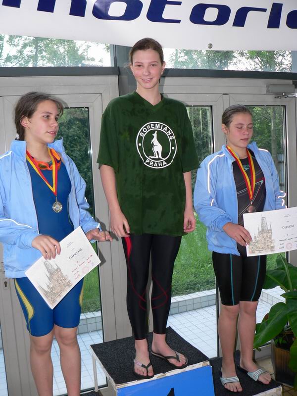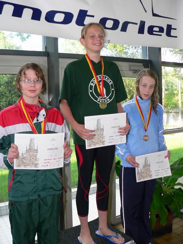 vyhlášení 100M žačky 1997 - 1. Kristýna Horská, 2. Olga Vaníčková, 3. Adéla Zvěřinová