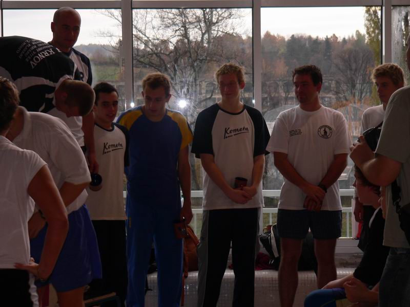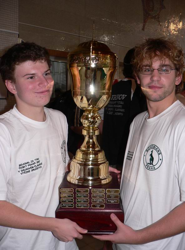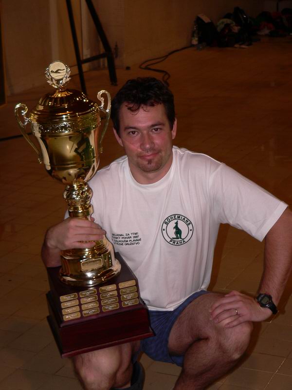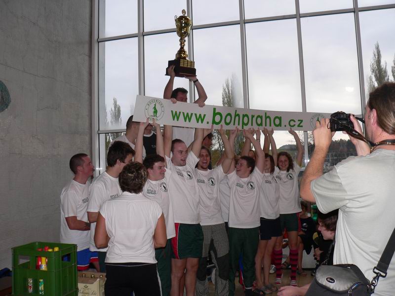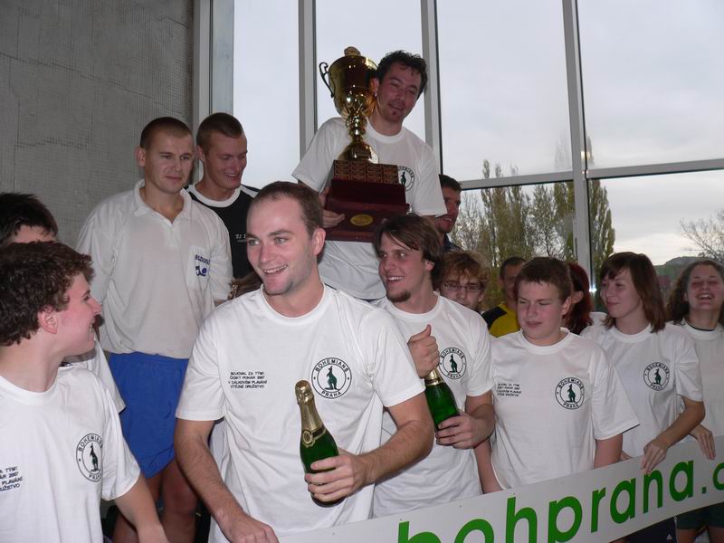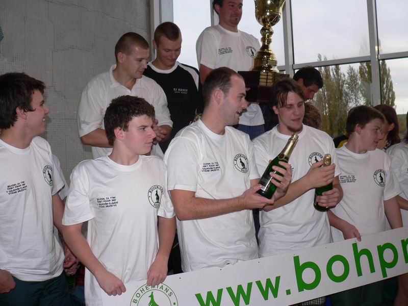 trojice nejlepších mužů v Českém poháru DP 2007 a dole na 4. místě se krčící a hihňající se Pepa Kučera